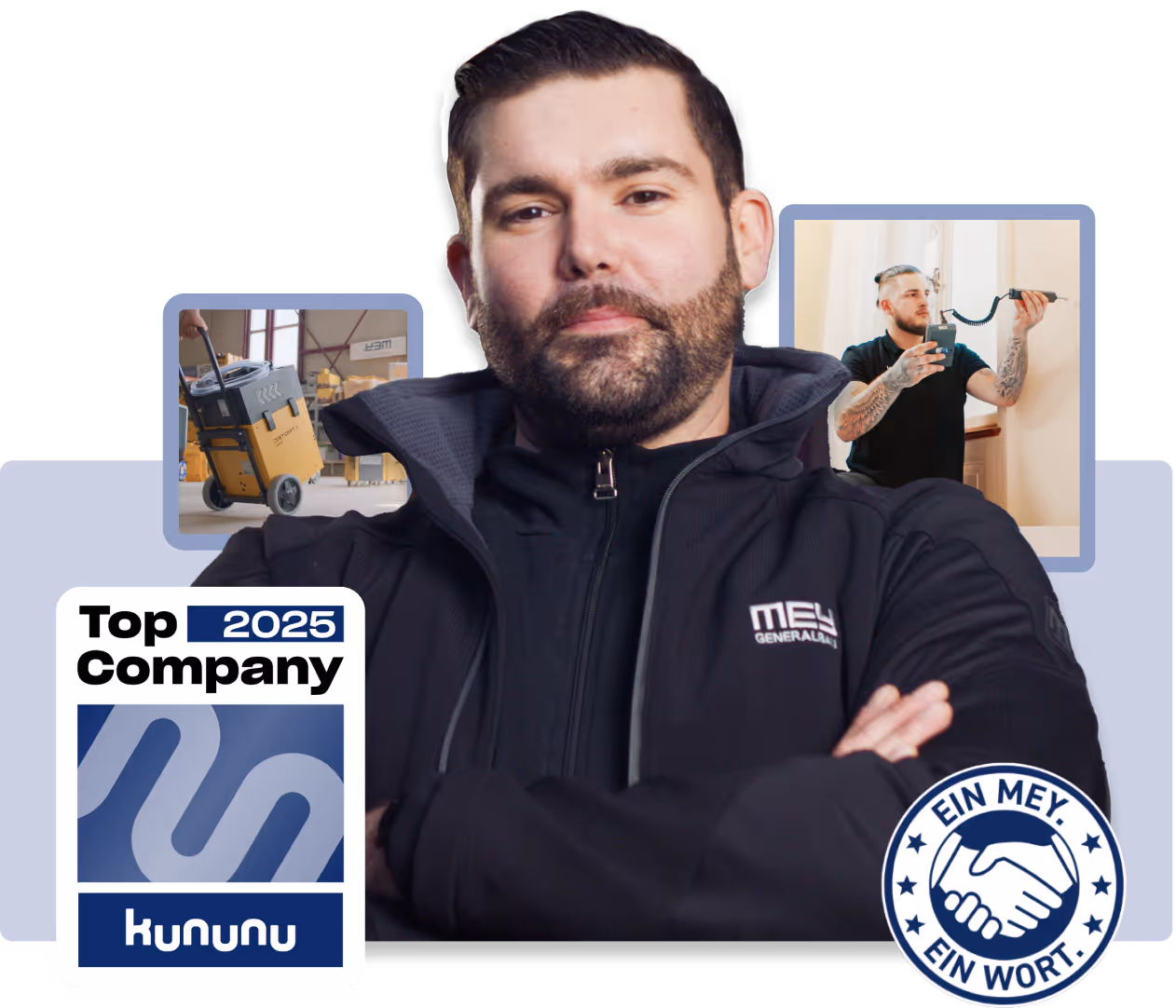Willkommen bei dem Spezialisten für Wasserschäden in Baden-Württemberg: Mey Generalbau. Unsere Kunden schätzen unsere Leistungsstärke und Zuverlässigkeit. Das liegt daran, dass wir uns verantwortlich machen – für unsere Kunden genauso wie für unsere Kollegen. Wir leben unser Motto: Ein Mey. Ein Wort. Wer uns noch gefehlt hat? Du!