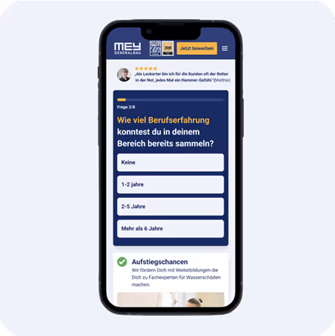 Ein Jobwechsel ist eine große Entscheidung. Ein Mey. Ein Wort. Das ist unser Versprechen – und das gilt auch für Dich. Wir holen Dich ins Team und geben Dir die Chance, mit uns zu wachsen. Wenn Du wissen willst, was bei uns für Dich möglich ist, dann klick Dich durch unsere Kurzbewerbung. Ich freue mich darauf, Dich persönlich kennenzulernen und vielleicht schon bald bei Mey willkommen zu heißen.